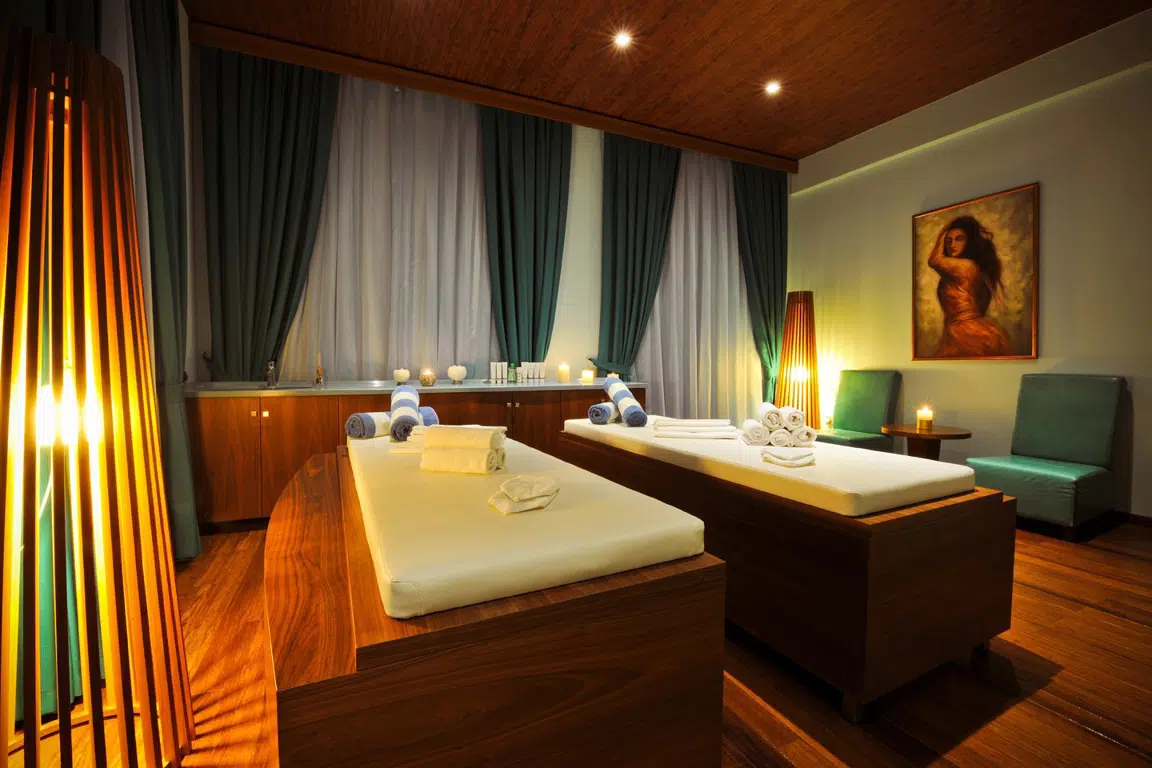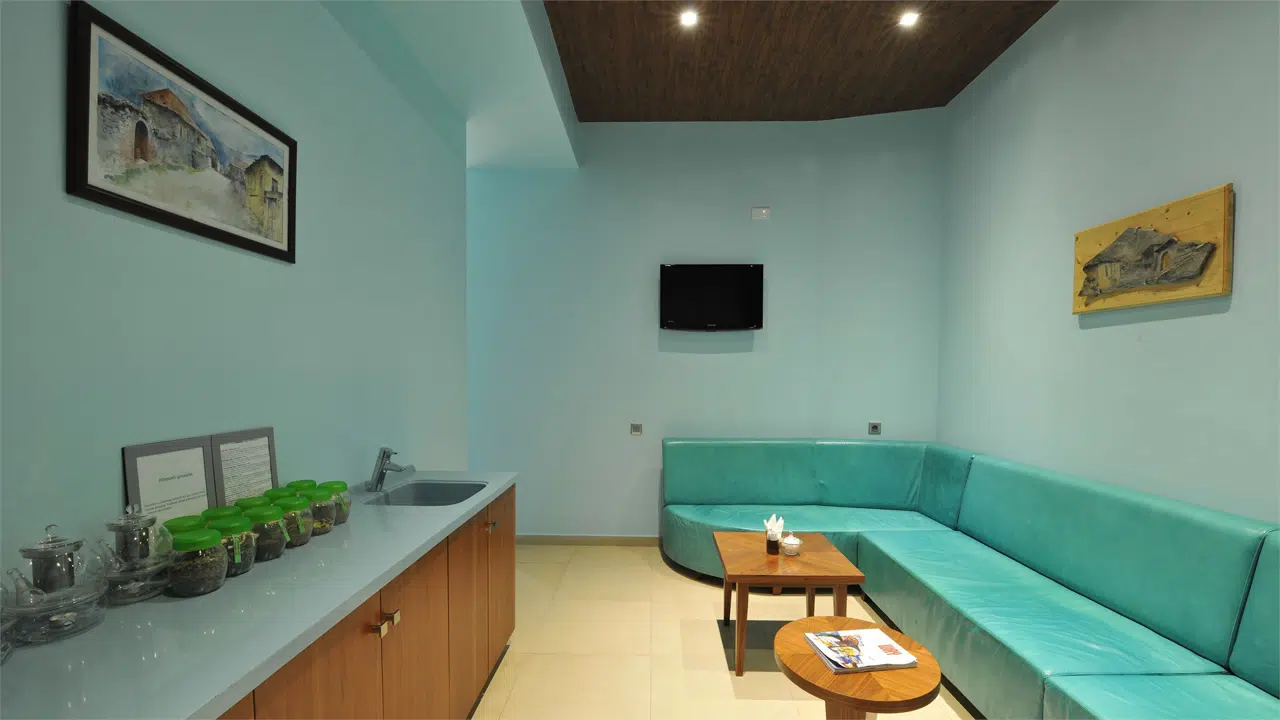 Experience pure bliss at our hotel's SPA and wellness center, offering a range of amenities including an indoor pool, herbal tea relaxation room, a steam room, ice room, ice bucket shower, jacuzzi, Turkish bath, change rooms, billiard, table tennis, table football